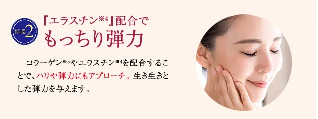 気持ちまで持ちあがるなめらか質感の美容液。パルミチン酸レチノールやエラスチン(※)がハリにアプローチし、生き生きとした弾力を与えます。