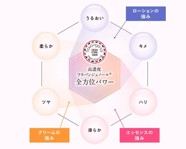 ※従来のフラバンジェノールより特長物質を多く含むフランスカイガンショウ樹皮エキス(保湿成分)のこと 〇「フラバンジェノール」は、株式会社東洋新薬の登録商標です